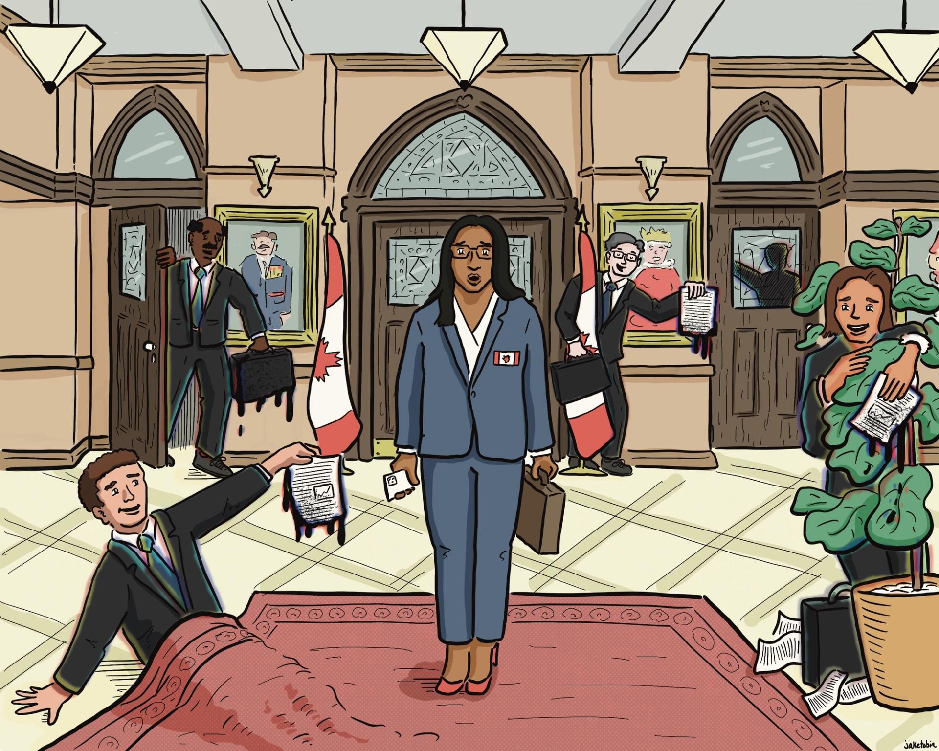Magazine cover image for Maisonneuve, Spring 2018 issue for feature article by Justin Ling on sex and silence in Canadian politics.