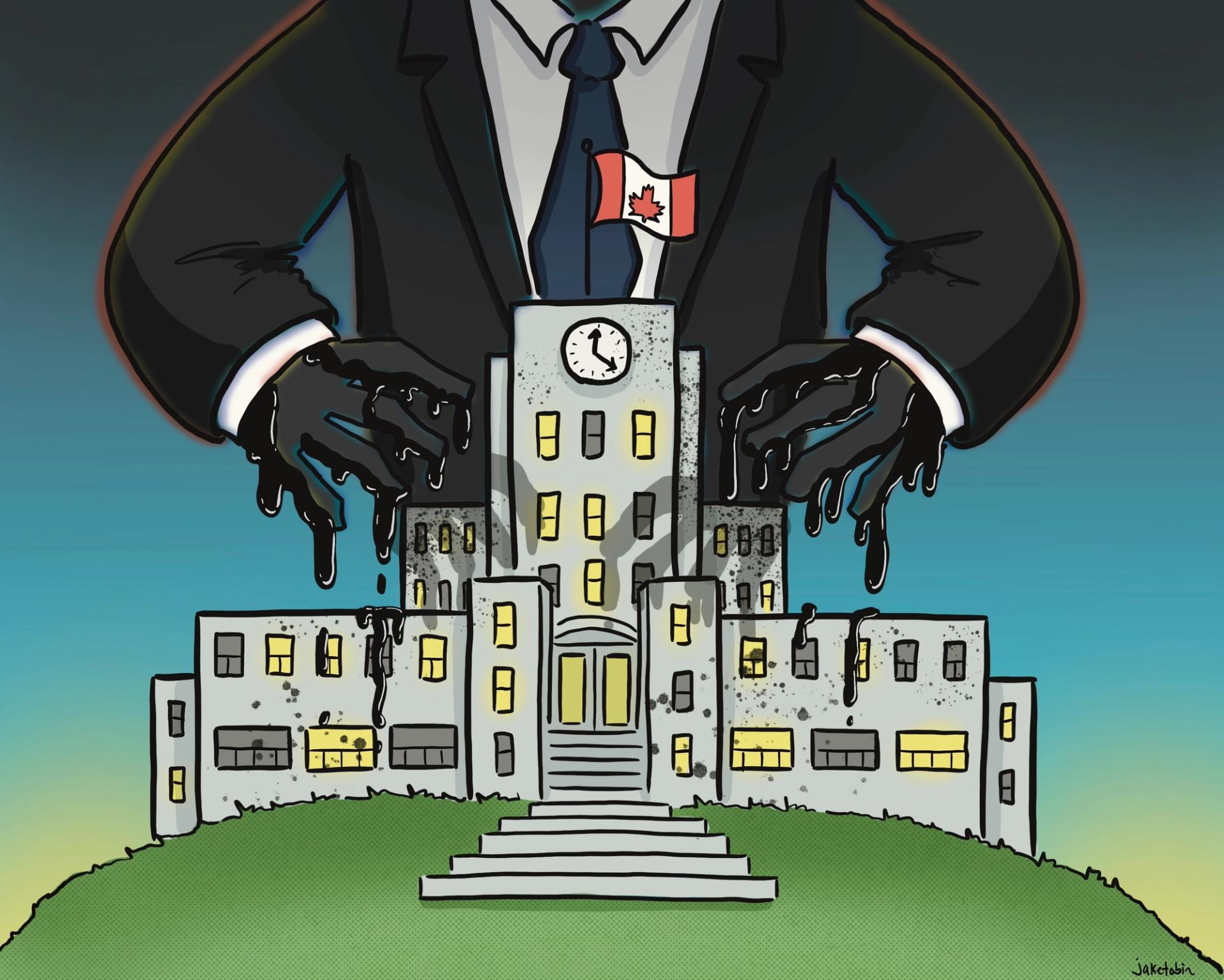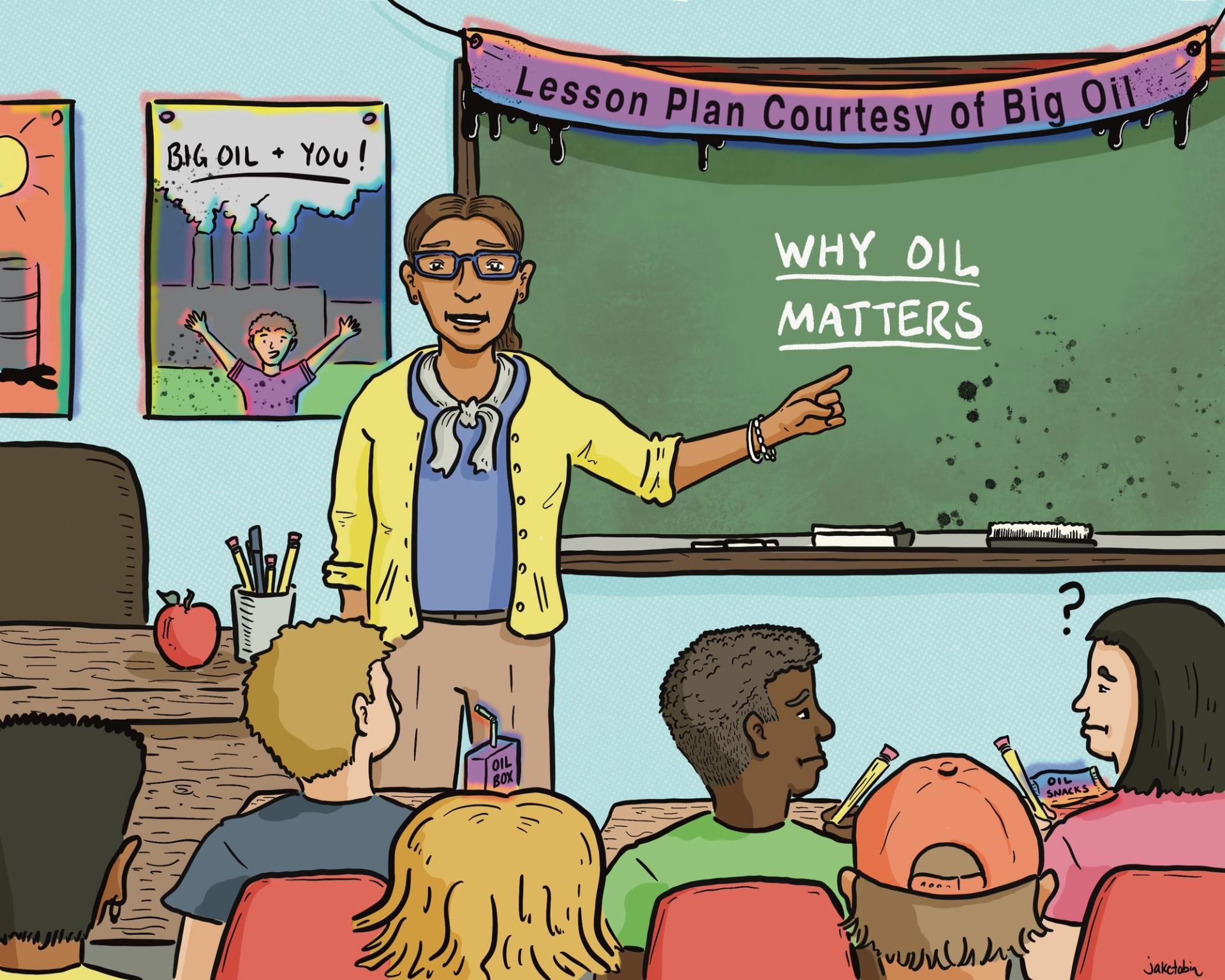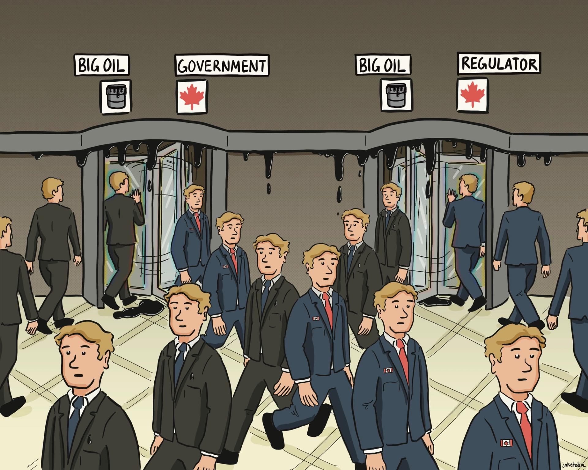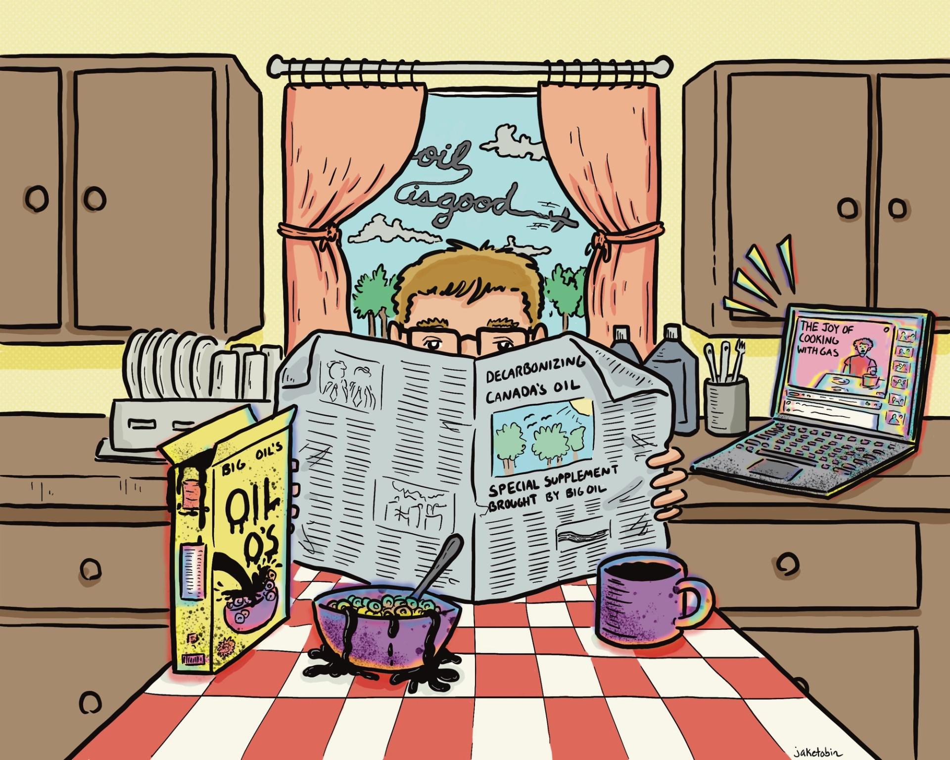 A series of eleven illustrations depicting the tactics that the oil industry uses to ensure public and government support to keep operating business as usual. Client: Environmental Defence, 2025.