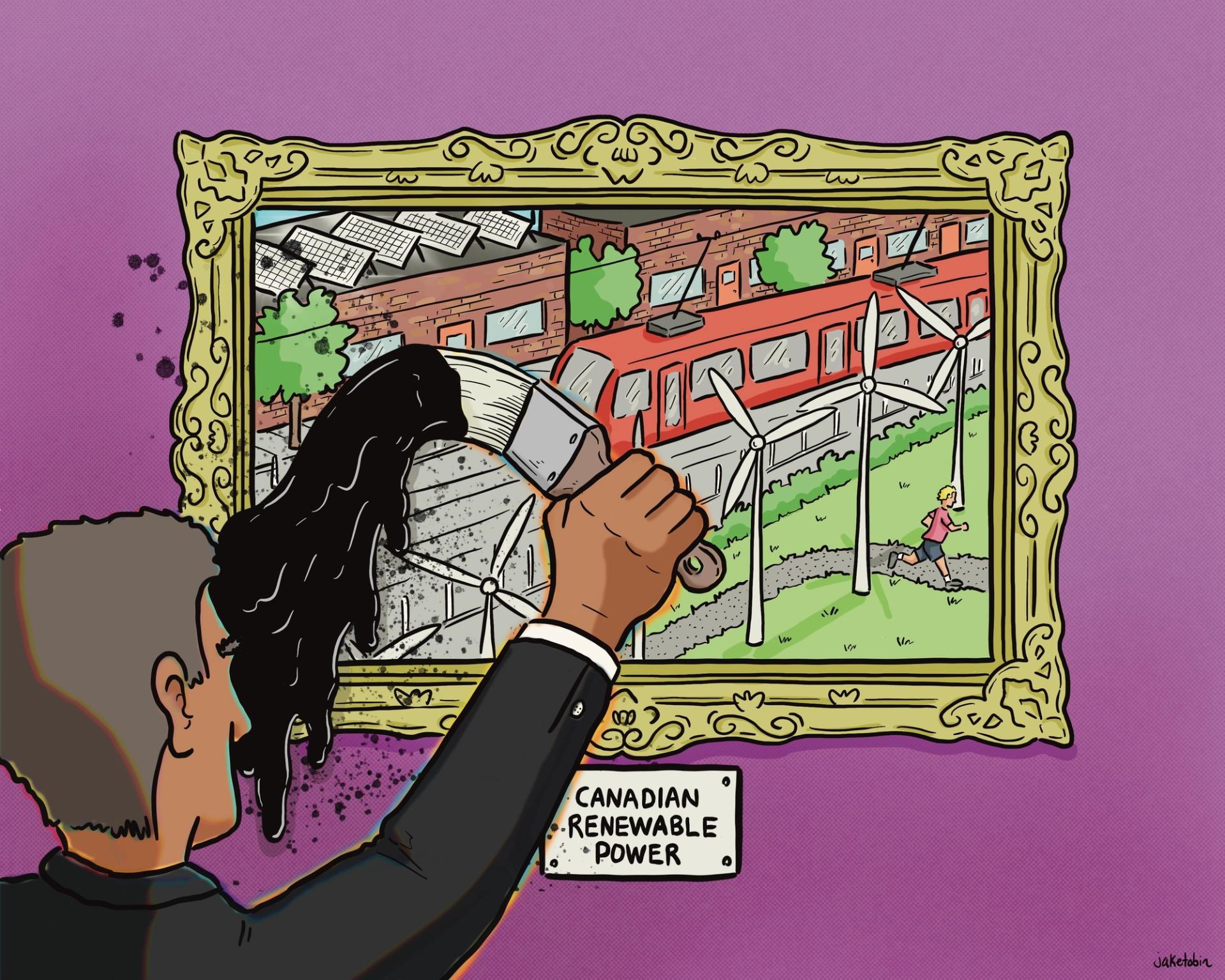 Illustration for Environmental Defence campaign to end fossil fuel subsidies. Brief was to show a sustainable, bright future with local food, transit, and renewable energy in a city enjoyed by people of all ages, abilities, and background. 2024