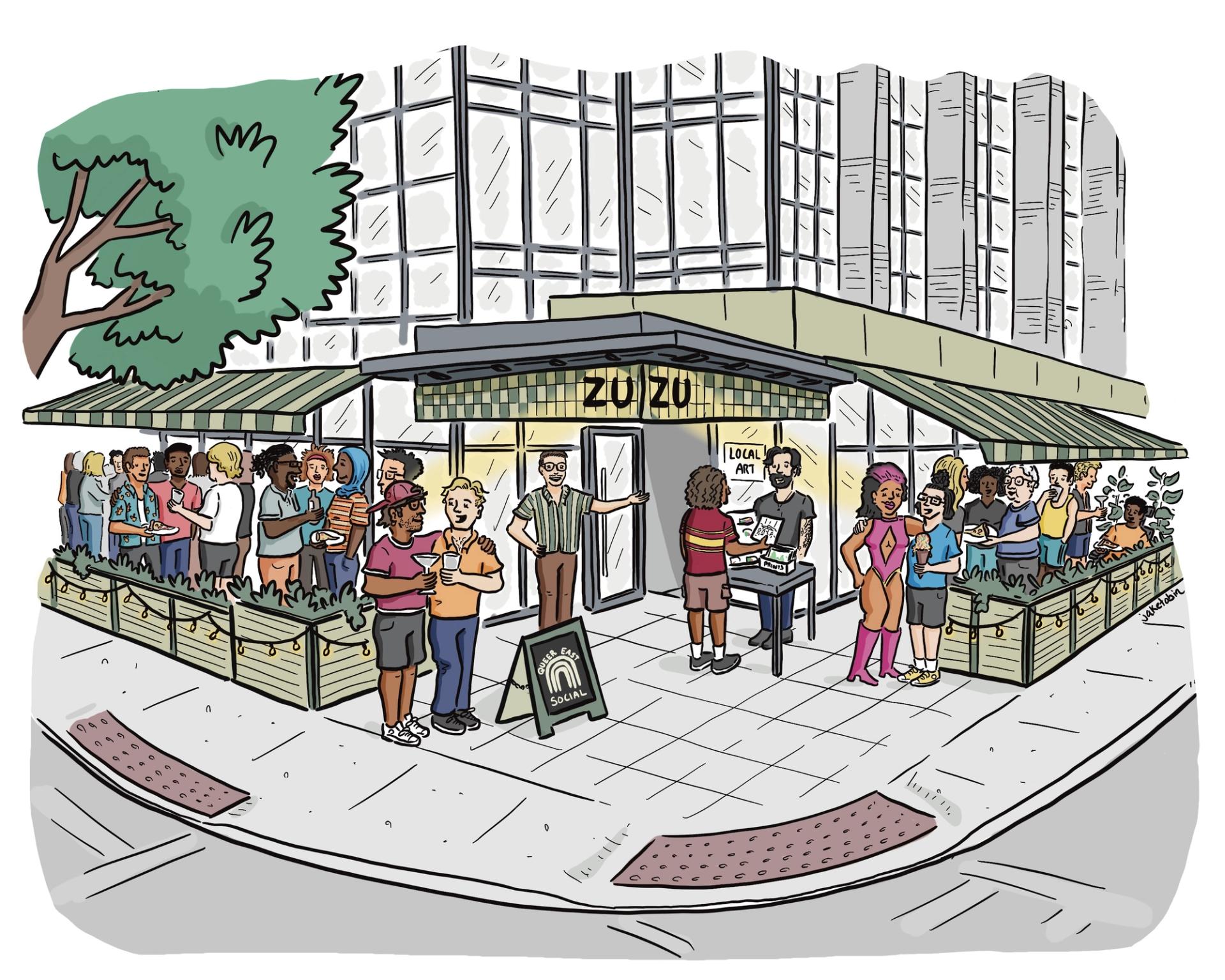 Event image for Cafe Zuzu's 2025 season of Queer East Social.