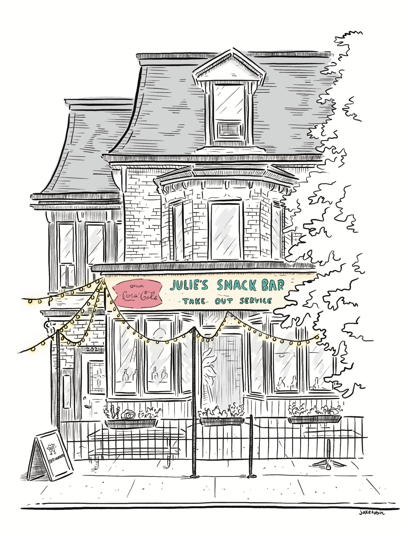 Tucked away on Dovercourt this magical spot still sports its old sign as Julie’s Snack Bar.