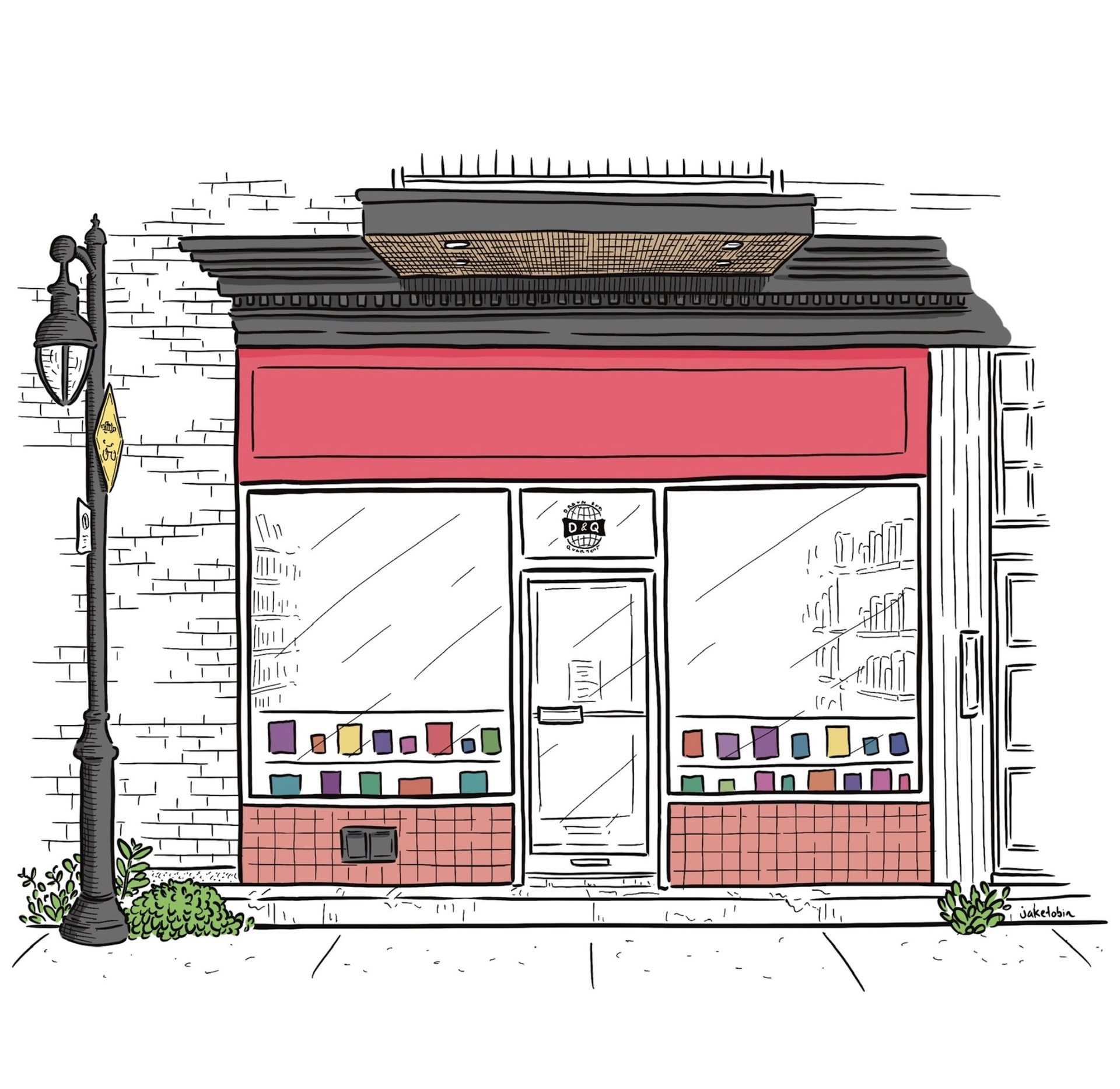 A whimsical take on Drawn & Quarterly in Montreal, QC. Part of a series of bookstore prints.