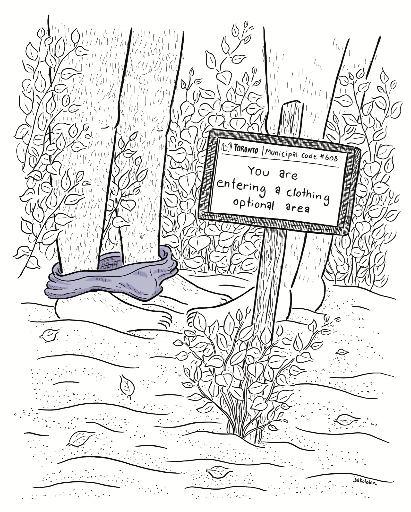 Part of a series of four Hanlan's Beach illustrations that celebrate Toronto’s historic nude beach and its legacy as a queer space. Anchored in signage found around the beach, each illustration is meant to elicit a cheeky "iykyk" vibe.