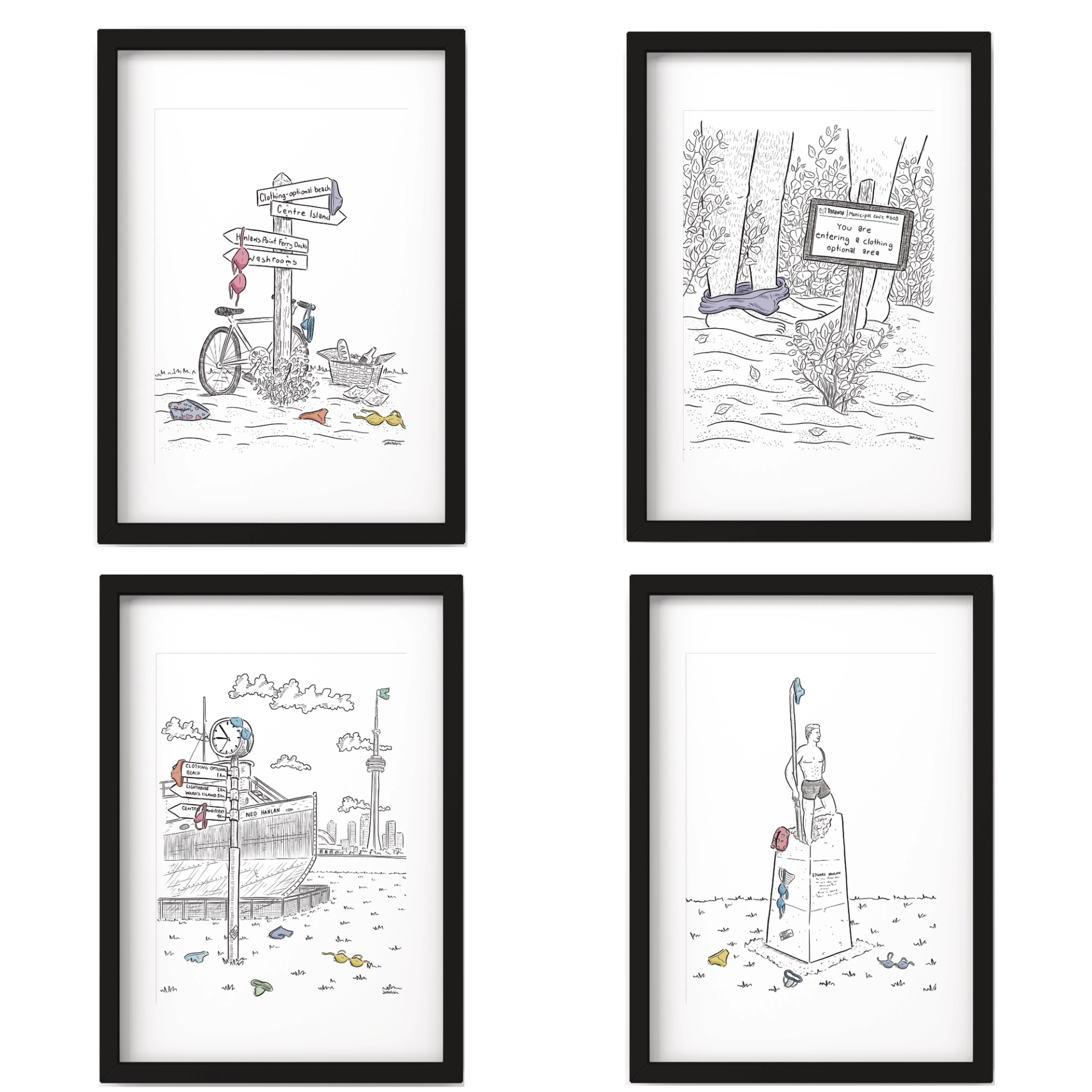 Save 20% and buy all four illustrations in the Hanlan's Beach series together, which celebrate Toronto’s historic nude beach and its legacy as a queer space. Anchored in signage found around the beach, each illustration is meant to elicit a cheeky "iykyk" vibe.