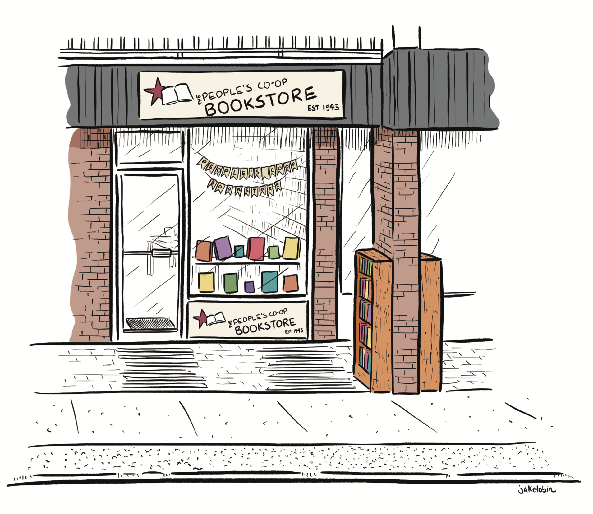 Operating since 1945, this print features People’s Co-op Bookstore in Vancouver, BC. Part of a series of bookstore prints.