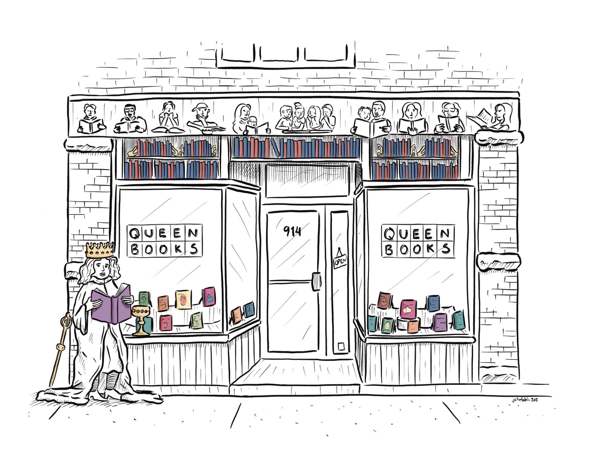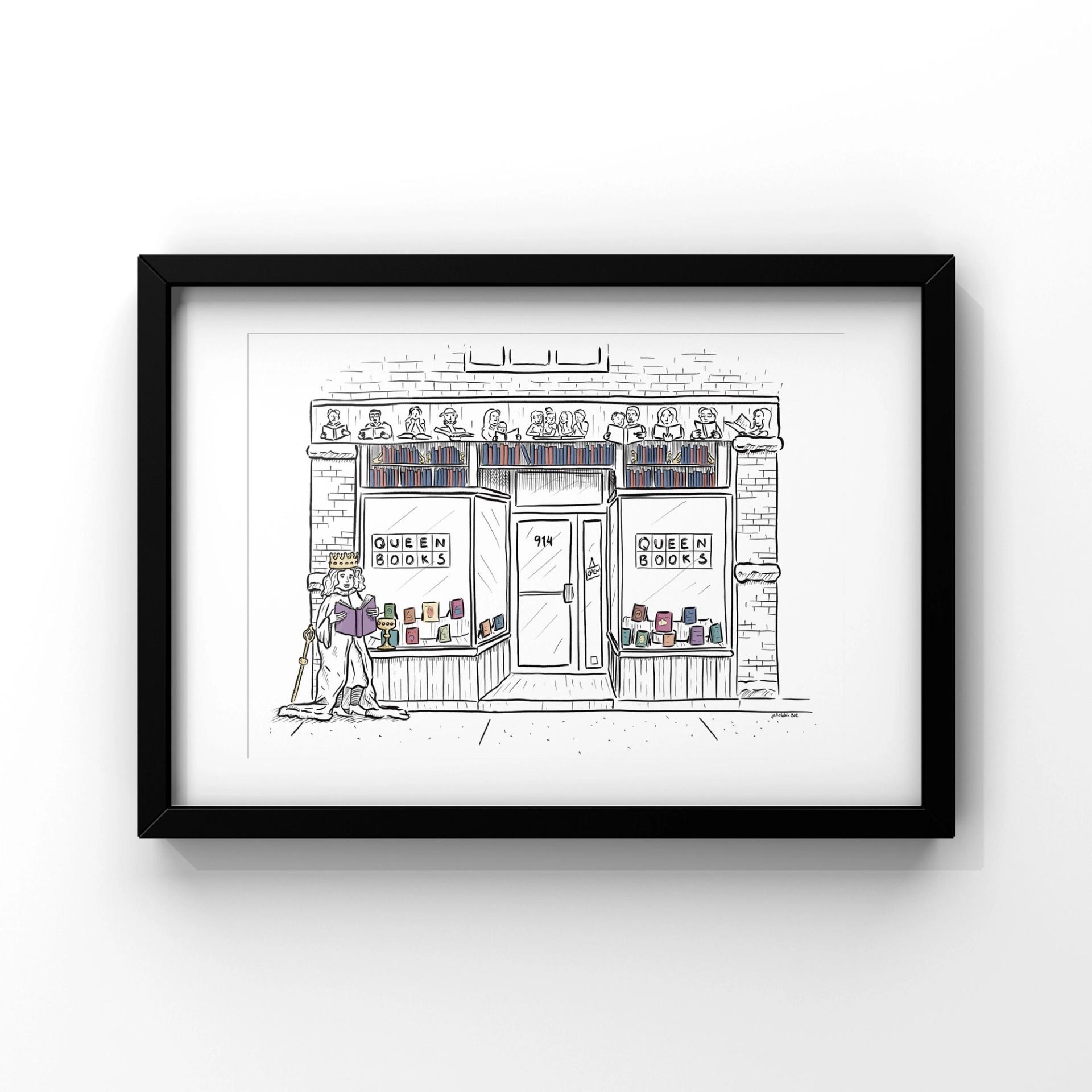 A whimsical take on Queen Books in Toronto, ON. Part of a series of bookstore prints.
