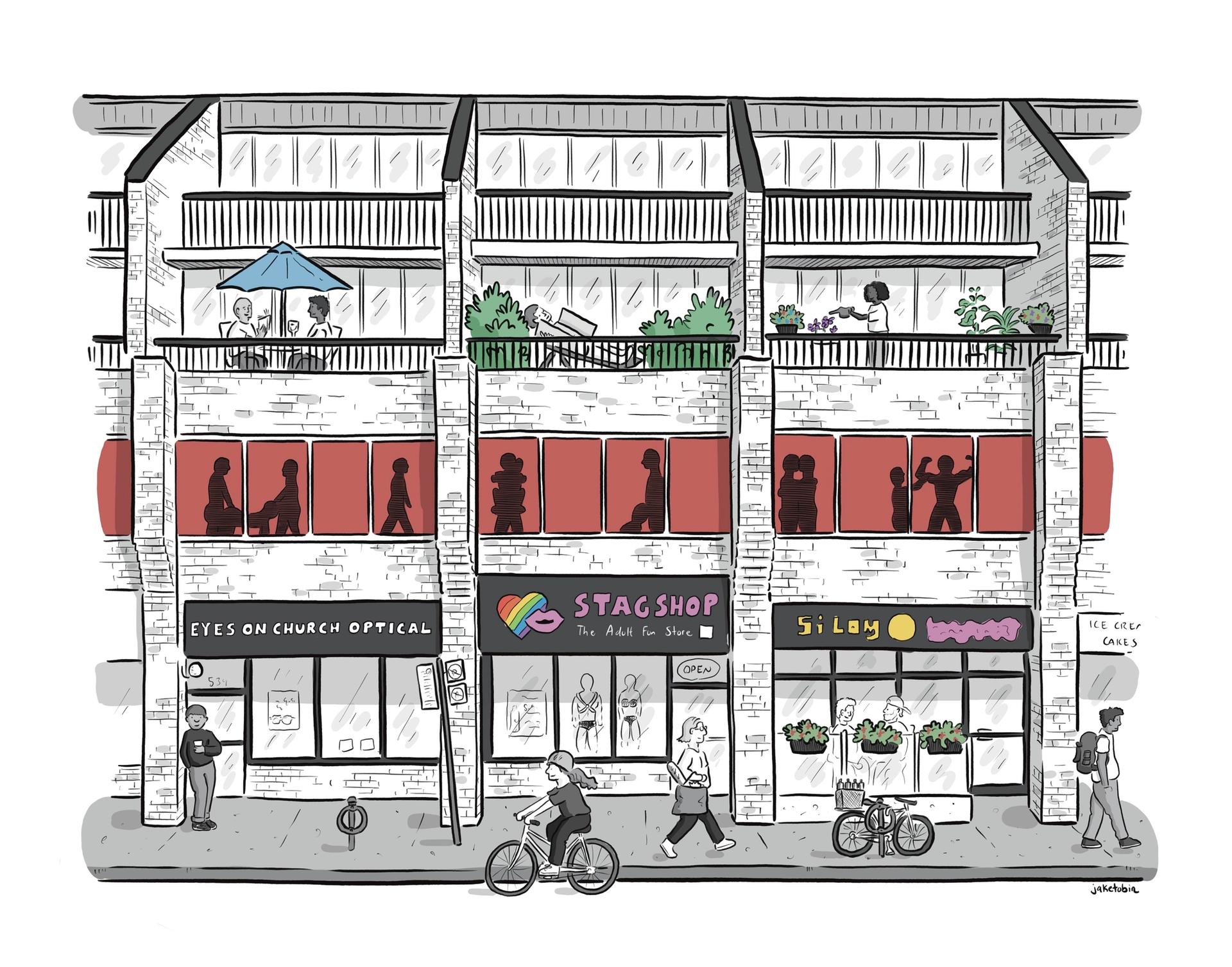 It might be a regular day on the street or up top, but it sure is steamy in the middle. This print celebrates the IYKYK atmosphere of Steamworks on Toronto's Church Street.