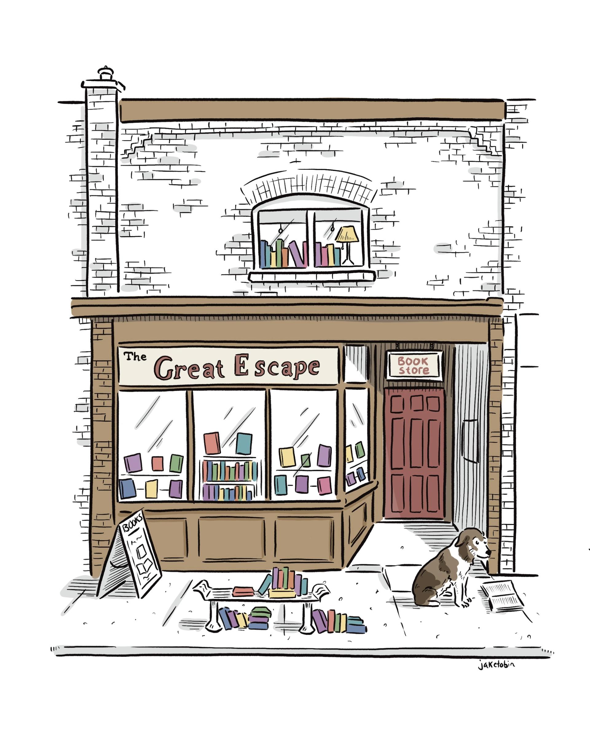 A whimsical take on The Great Escape in Toronto, ON. Part of a series of bookstore prints.