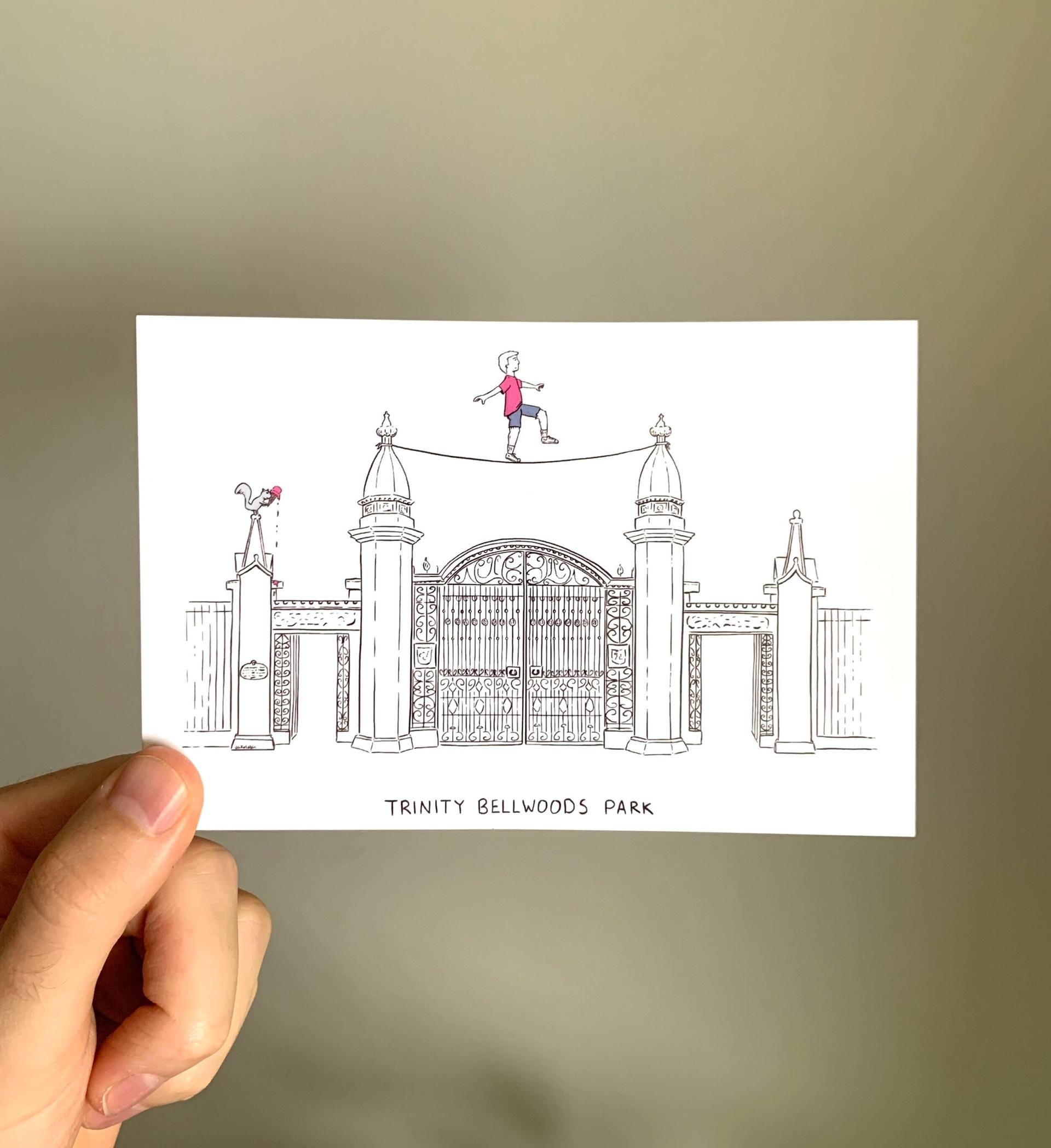 This 4x6 postcard of Trinity Bellwood Park’s famous gates is perfect for sending notes to your loved ones, besties, or frenemies.